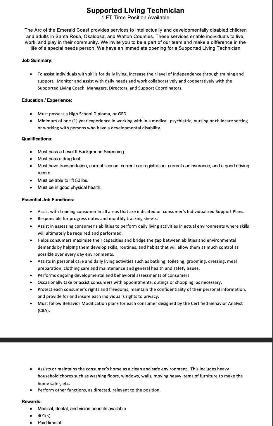 Supported Living 1 FT